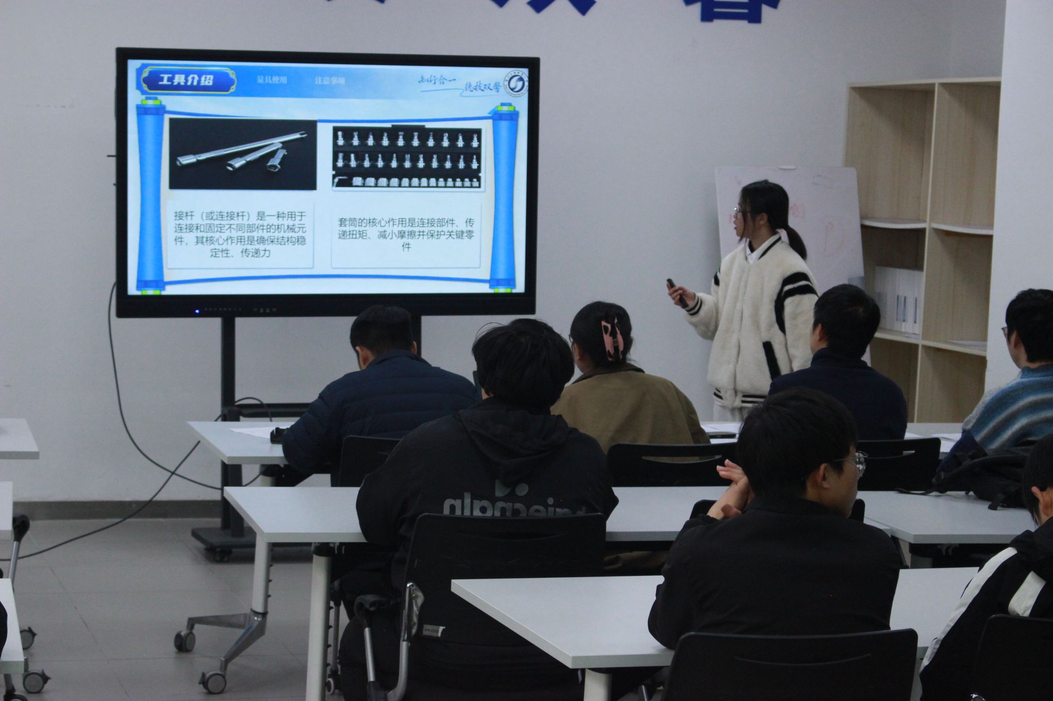 本次大赛覆盖学院全体在校生,经前期理论考核及集中训练,49名学生脱颖而出晋级决赛。决赛现场,选手们先开展四大实操项目比拼,包括发动机拆装与检测、汽车电气系统检测、变速器拆装与部件识别、智能网联汽车传感器检测,沉着规范的操作充分展现出选手们的风采。实操结束后,选手通过 PPT 进行学习成果汇报,系统展示阶段性学习成果、项目理解及未来提升方向,全方位考察了专业能力、表达能力等综合素养。