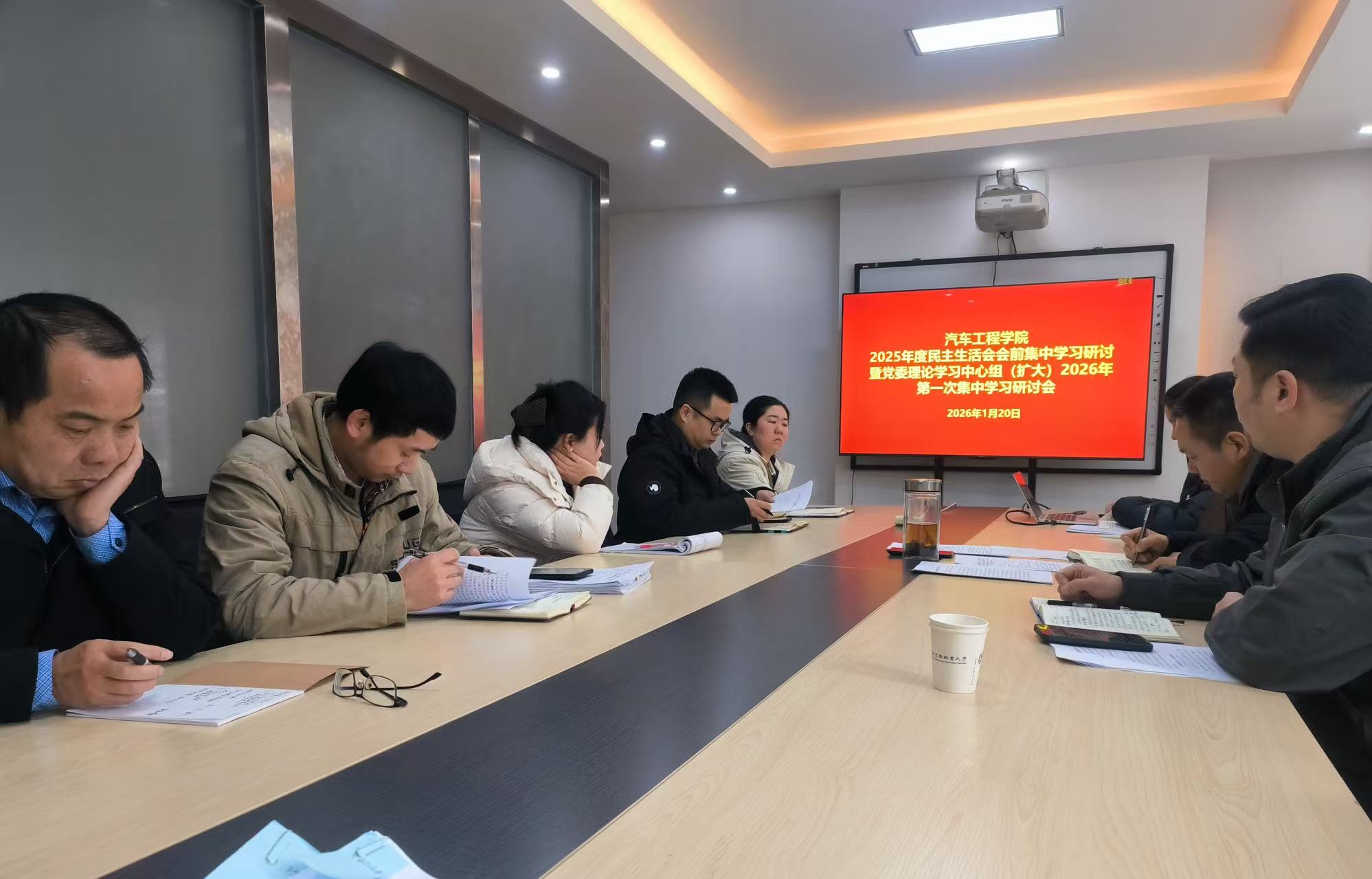 1月20日,汽车工程学院在T9-B519会议室召开2025年度民主生活会会前集中学习研讨会暨党委理论学习中心组(扩大)2026年第一次集中学习研讨会,全面贯彻落实学校相关会议部署要求。学院党委书记曹云刚主持会议并讲话,院党委班子成员、科级干部、教师代表参加本次集中学习。