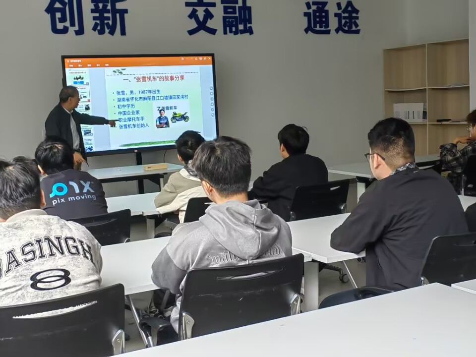 讲座中,陈文华教授结合自身从农民、汽修工到人民教师的成长经历,分享了张雪机车创始人、陆步轩的励志创业故事,剖析其坚守热爱、锤炼本领的奋斗历程,为学子带来深刻启发。结合自身经验,陈文华教授勉励学子立足实际、扎根基层、坚守热爱,理性规划职业生涯,在实践中锤炼本领,以专注与坚持实现人生价值。