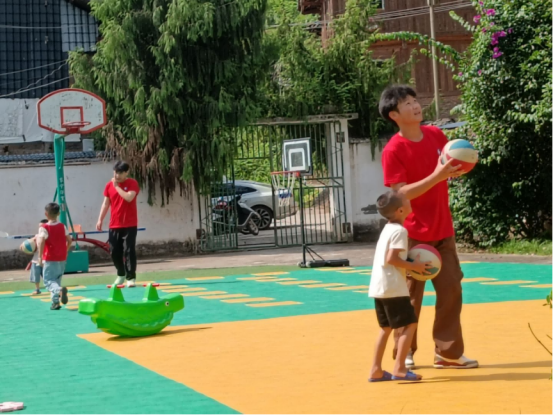 在或里村幼儿园,队员们通过情景模拟等方式讲解交通安全、防拐防骗等知识,增强儿童们的自我保护意识;手把手指导的橡皮泥手工课,让童稚的创造力绽放为可爱的动物与鲜花;趣味运动会则点燃了操场的活力,接力运球、跳绳中协作的种子悄然播撒。绘本、文具等爱心物资的捐赠,更承载着对未来的期许。