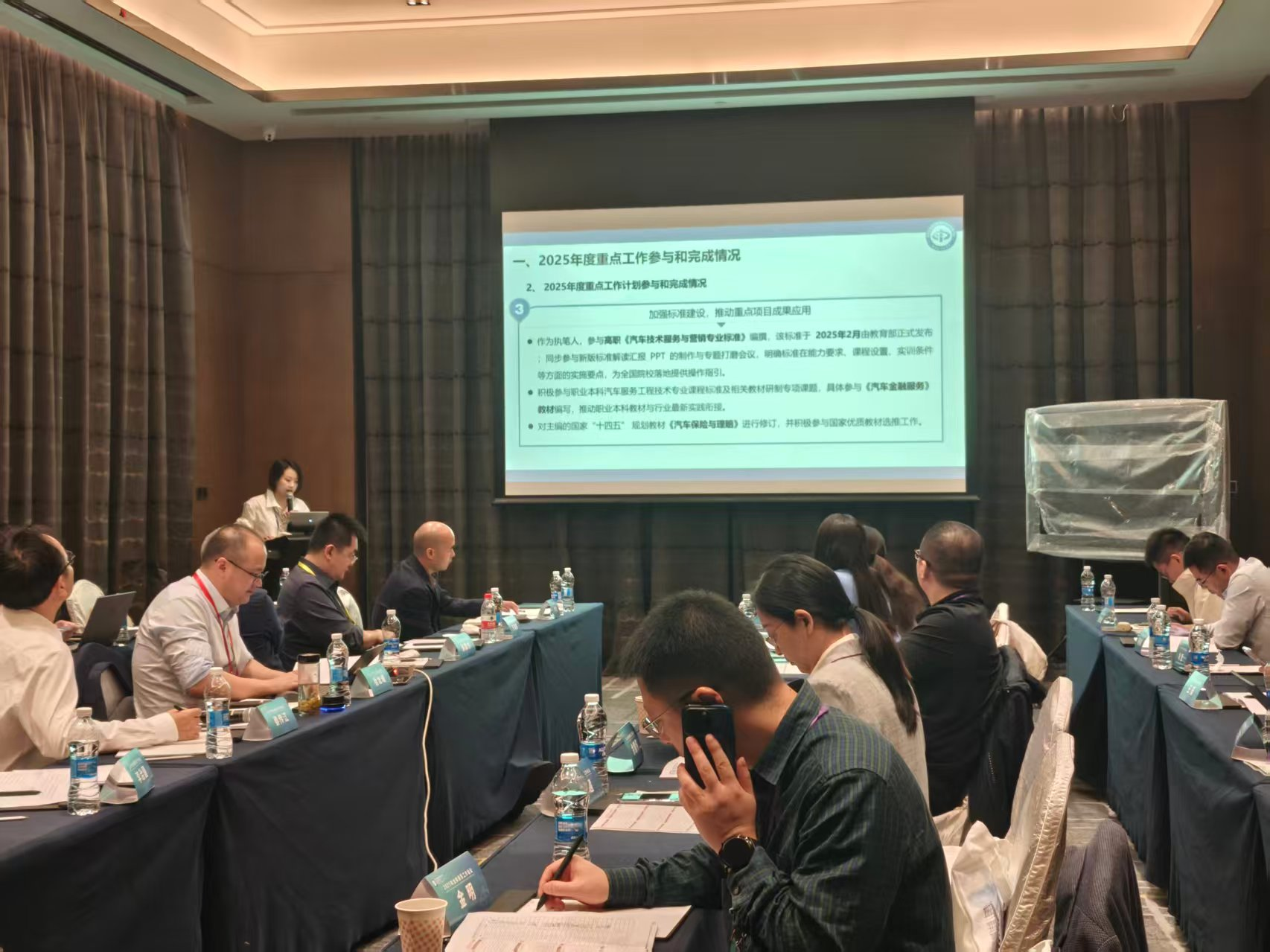 年会期间,王毅教授在汽车行指委2025年工作会议上被正式聘为新一届汽车行指委委员,向巍教授在专题研讨会分享我院双高建设、职业本科发展等实践经验,彭静教授作汽车营销专委会工作报告,涂振印老师完成《智能网联整车综合测试》课程标准课题中期汇报。