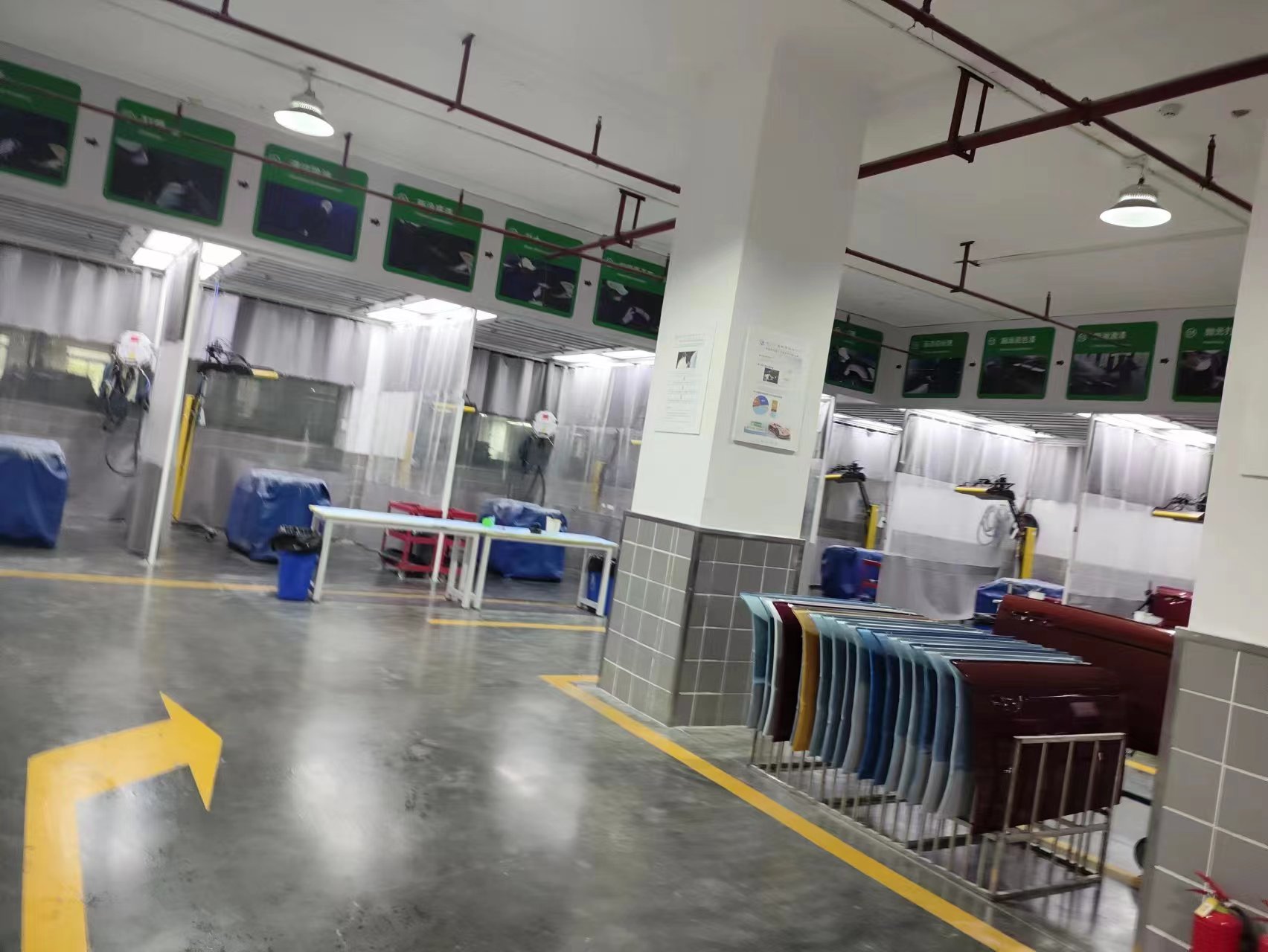 汽车喷涂实训室承担喷涂专业学生底处理、调漆、面喷、抛光、汽车贴膜、汽车美容等专业实训,实训室现有干磨工位12个、喷漆工位12个、喷漆房3间、喷涂仿真机2台、调漆工位8个、汽车美容工位2个等,全面覆盖汽车喷涂所需各工位,汽车喷涂专业教师团队3人,均取得PPG三级及以上等级认证证书,有丰富的企业实践经验和技能大赛指导经历。场地面积1380㎡,设备价值400万元,可容纳30-40名专业学生同时开展各项实训任务。