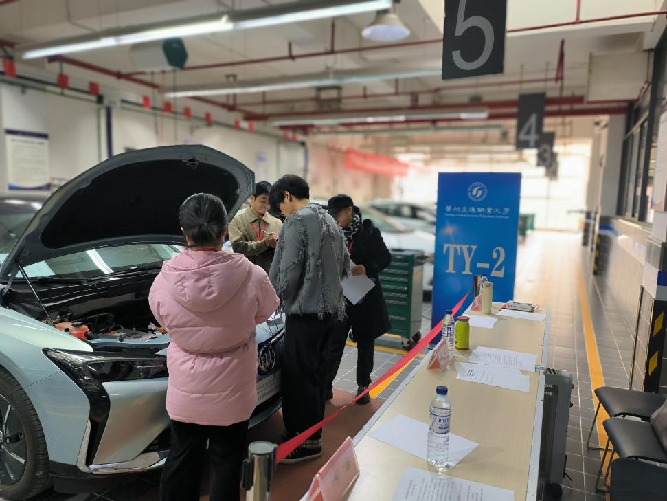测试前,学院以“公平、规范、专业”为核心原则推进筹备工作,成立工作领导小组统筹全局,下设命题、现场考务、后勤保障专项工作组明确分工。命题环节严格对标考试大纲,安排专人封闭命题并做好保密工作;考场布局精准匹配专业需求,设置新能源汽车技术、汽车检测与维修技术 2 个考区,配套考务、候考区域,共规划 6 个实操工位。