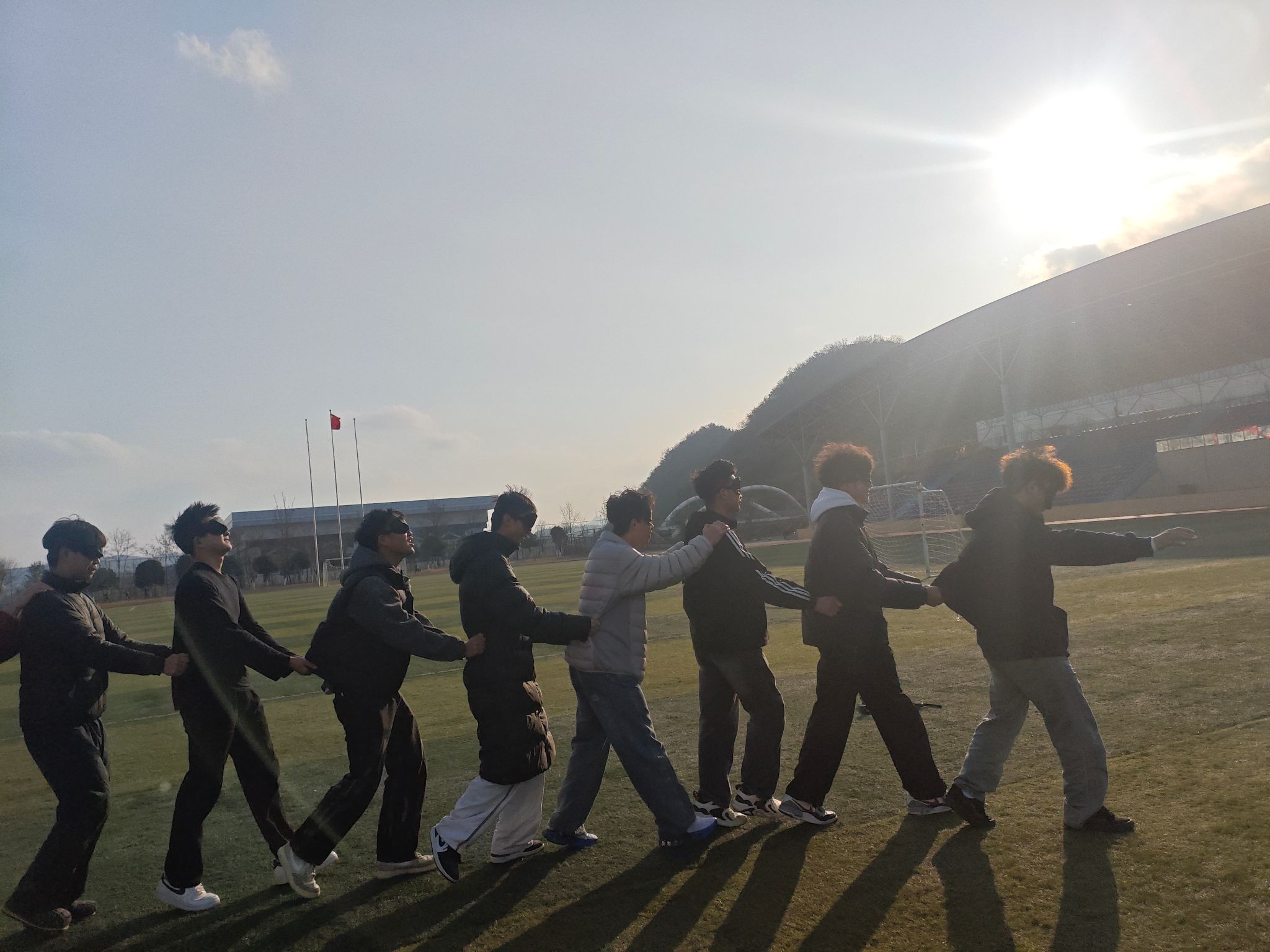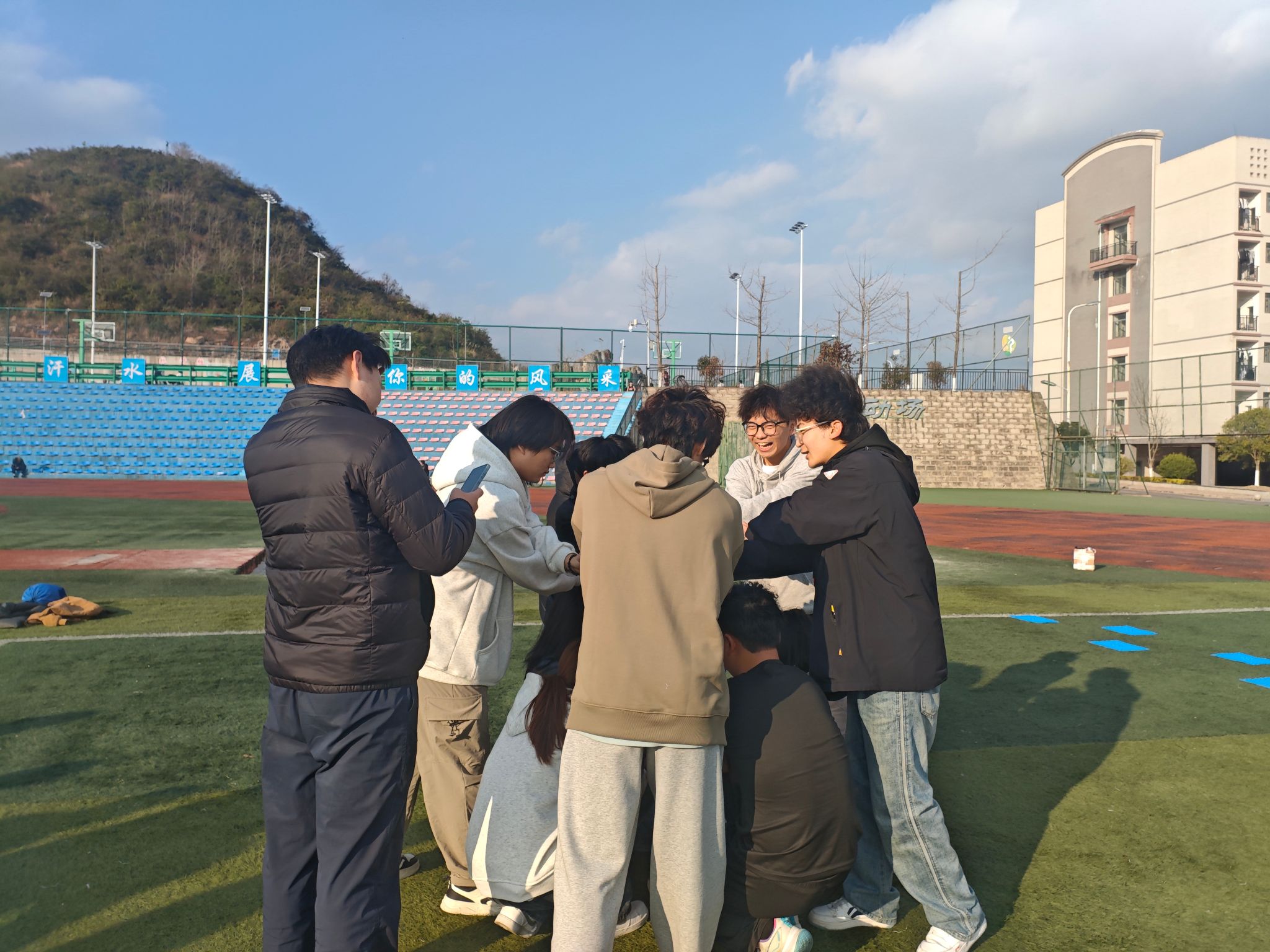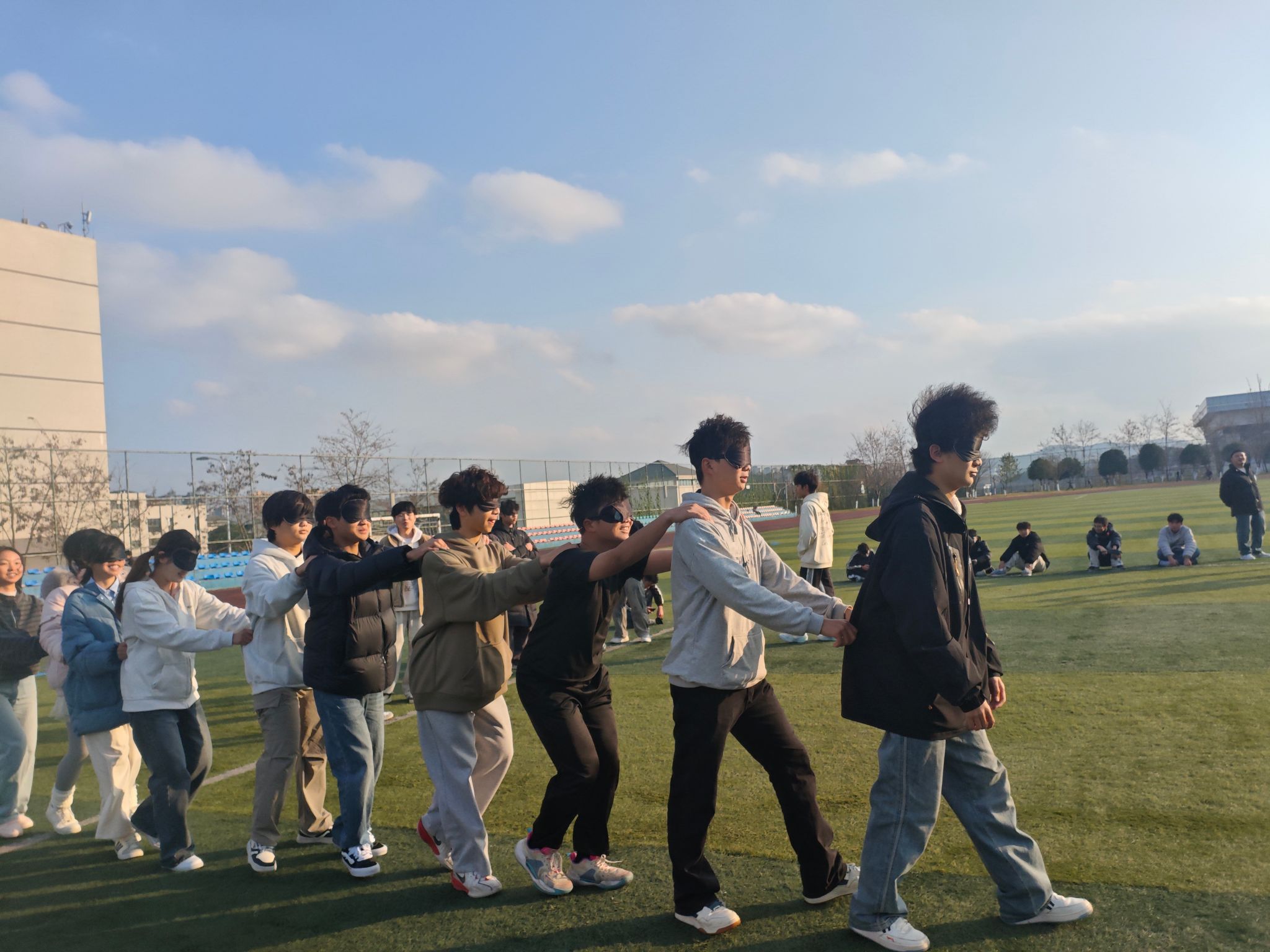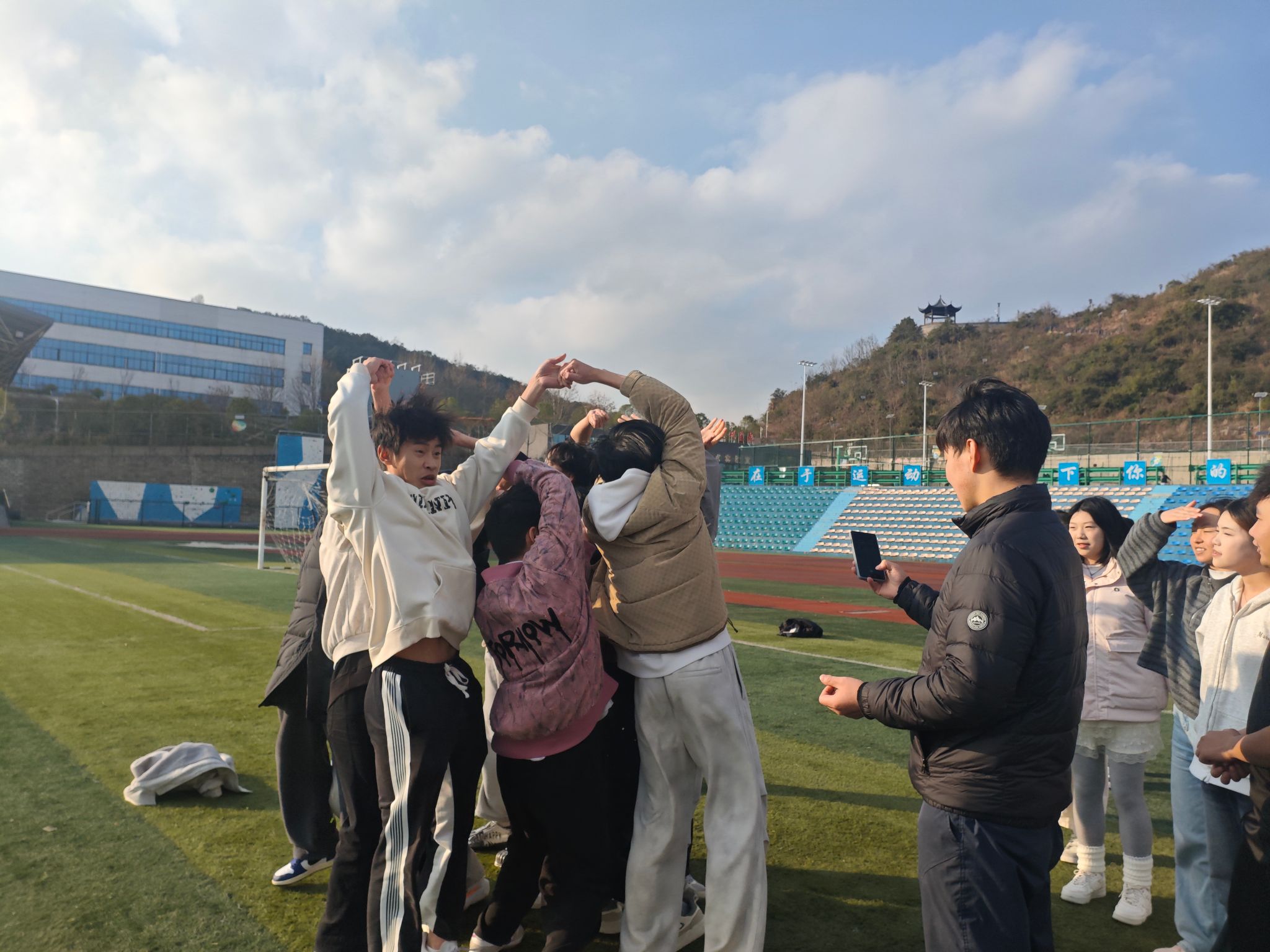 活动中,“桃花朵朵开”分组游戏迅速点燃气氛,同学们随指令组队打破隔阂;随后“心有千千结”环节,大家手拉手协作解谜,深刻体会团队配合与沟通的重要性;最后的“贪吃蛇”活动将氛围推向高潮,同学们紧跟“蛇头”灵活穿梭,既锻炼反应能力,又增强了集体归属感。